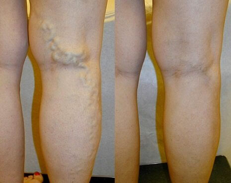 Las venas se han recuperado por completo. Período de tratamiento: 2 semanas.